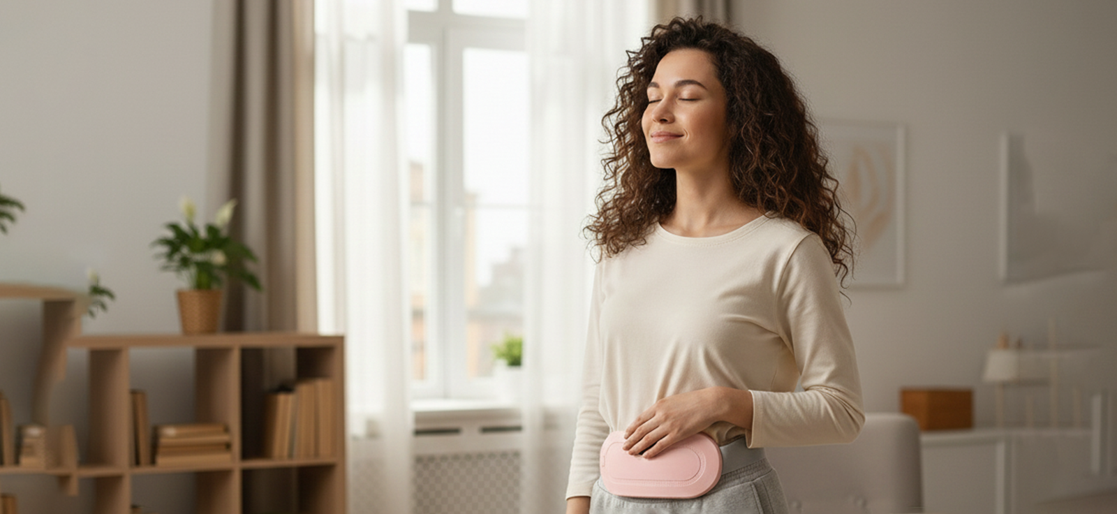 Elle diffuse une chaleur douce et ciblée sur le bas-ventre ou le bas du dos pour soulager efficacement les douleurs menstruelles.